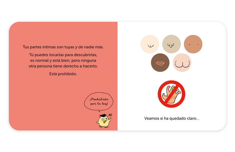Un libro para que los niños y niñas aprendan a proteger su propio cuerpo desde pequeños. Este es tu cuerpo, te pertenece solo a ti. Nadie tiene derecho a tocarlo sin tu permiso. Tú eres el dueño de tu cuerpo. Con un mensaje claro y acorde a la infancia se invita al lector a identificar sus partes íntimas, nombrarlas y protegerlas. El lector aprenderá que su cuerpo le pertenece, que él es el único dueño de él y que tiene derecho a decir NO cuando su integridad corporal se pone en peligro. Porque nadie tiene derecho a tocar el cuerpo de otros sin su consentimiento y esta regla