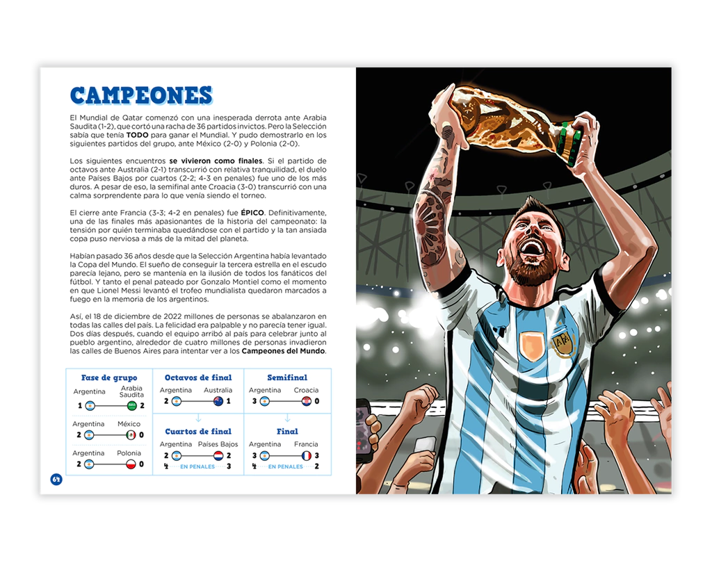 Un libro para conocer a fondo a Scaloni, al cuerpo técnico y a cada uno de los jugadores que formaron parte de este equipo inolvidable. Descubrí datos curiosos e inéditos de cada uno de ellos. ¡Y que la felicidad de Qatar 2022 no se termine nunca!