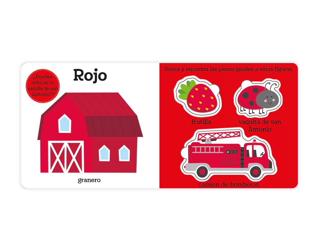 busquen y encastren dentro del libro. Una colección para estimular habilidades de encastre, del habla y para encontrar iguales.
