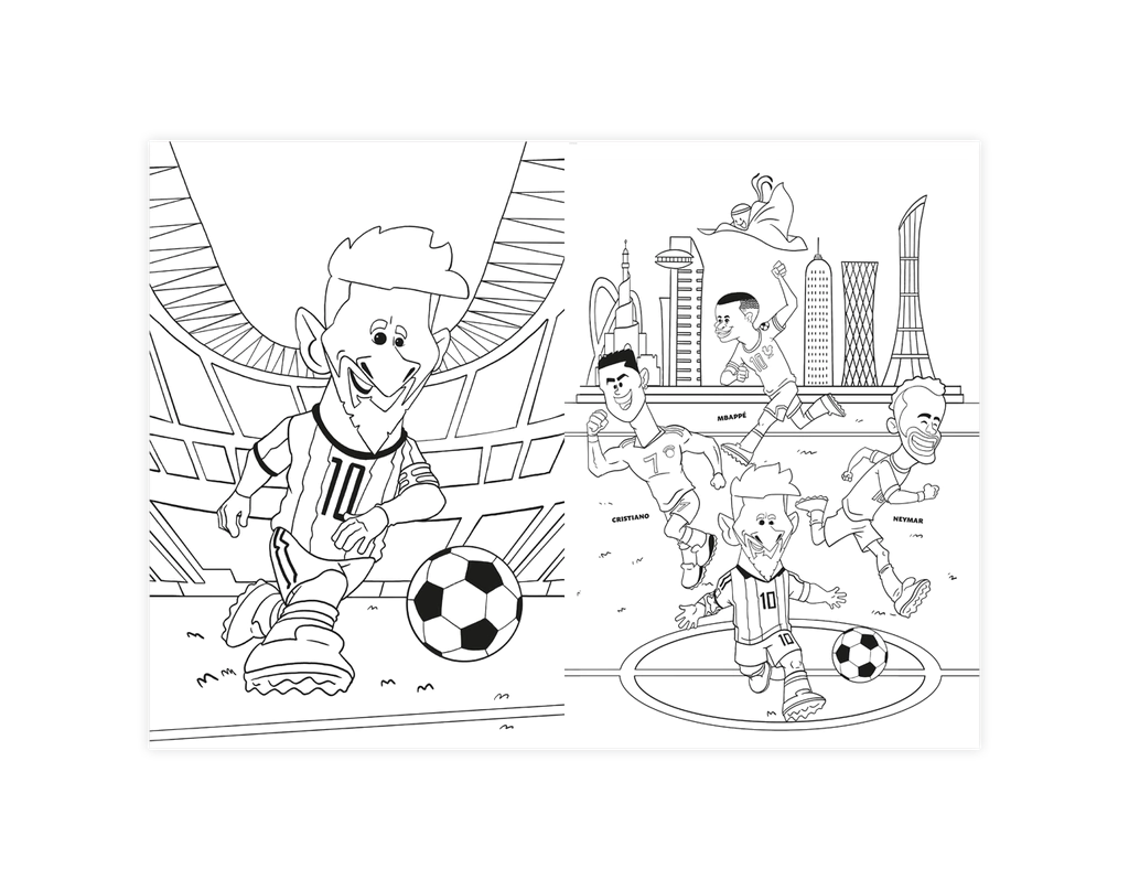 El fútbol está lleno de colores. Y, en este libro, ¡vas a ser el artista que le dé vida a cada página! Las camisetas que usó Messi, las banderas, que lo alentaron, los escudos de los equipos en los que jugó: en cada página encontrarás una escena inolvidable para colorear y dar rienda suelta a tu reatividad.