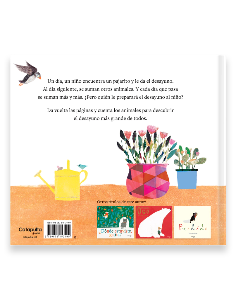 Un día, un niño encuentra un pajarito y le da el desayuno. Al día siguiente, se suman otros animales. Y cada día que pasa se suman más y más. ¿Pero quién le preparará el desayuno al niño?
